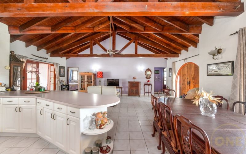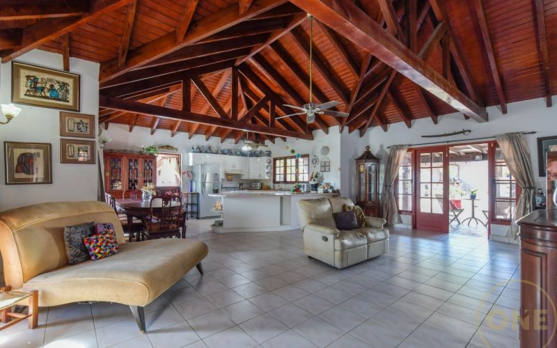 A charming 3-bedroom, 2-bath home offering comfort, character, and authentic tropical appeal. The property sits on a 614 m² freehold land ( eigendom) and features a total built-up area of 184 m², thoughtfully designed for relaxed indoor-outdoor living.