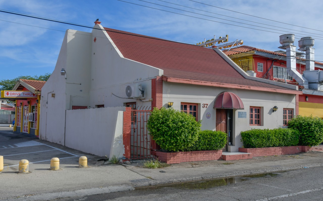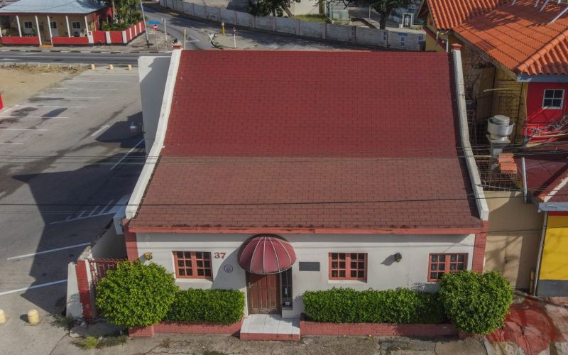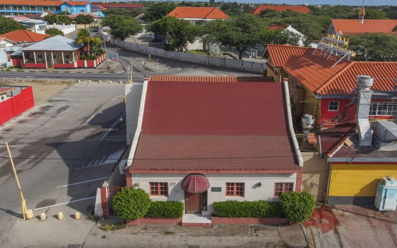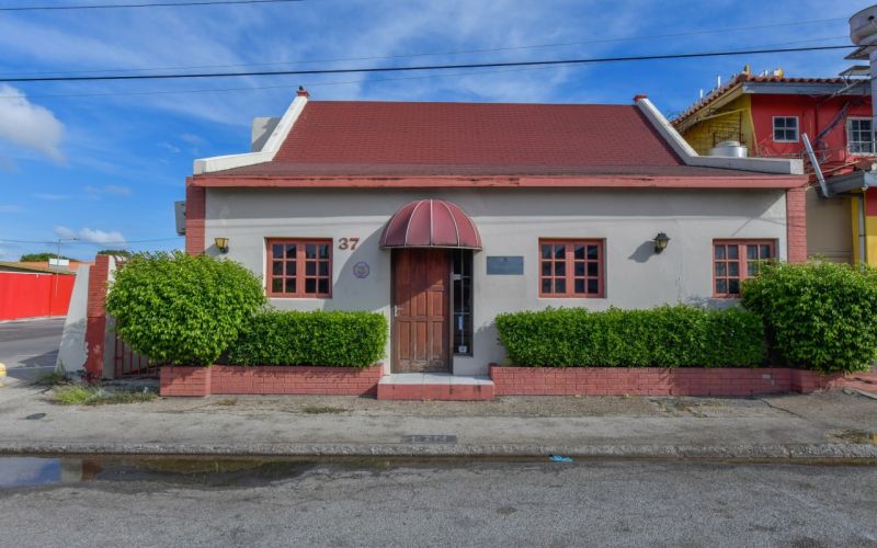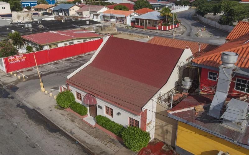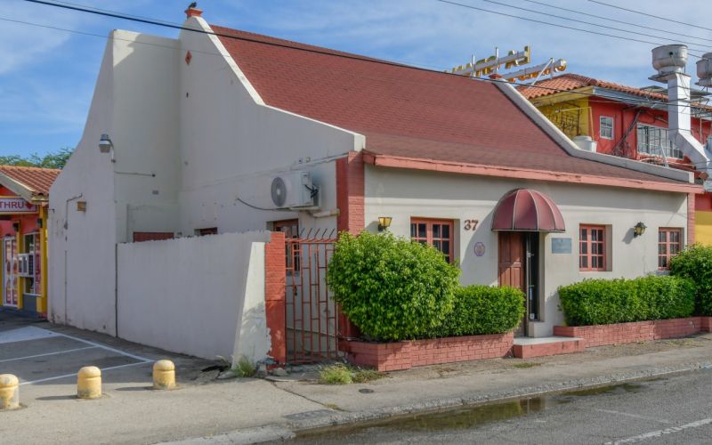 Located in the vibrant center of Oranjestad, this well-positioned commercial property offers approximately 180 m² of built-up space on 144 m² of long-lease land. The ground floor features a welcoming reception area, three enclosed offices, a kitchen/pantry, and a storage/archive room. Upstairs, a spacious 55 m² attic provides flexible options for additional workspace, storage, or potential living quarters—ideal for a live-work concept.